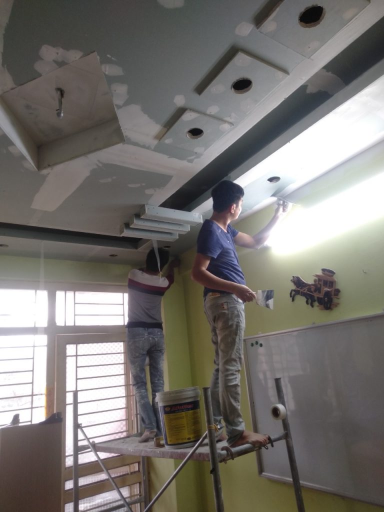 Câu trả lời rằng là: Bên thợ sơn nhà, thạch cao bên em nhận hết, việc gì cũng làm, dịch vụ sơn nhà trọn gói cũng làm, nhân công cũng làm.