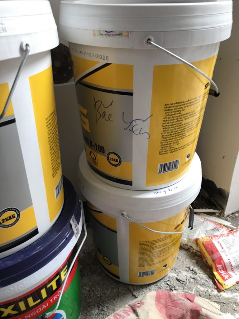 Vì là nhà tập thể nên là trên 1 sàn, tổng diện tích cần sơn nhà cả trần và tường rơi vào khoảng gần 300m2.